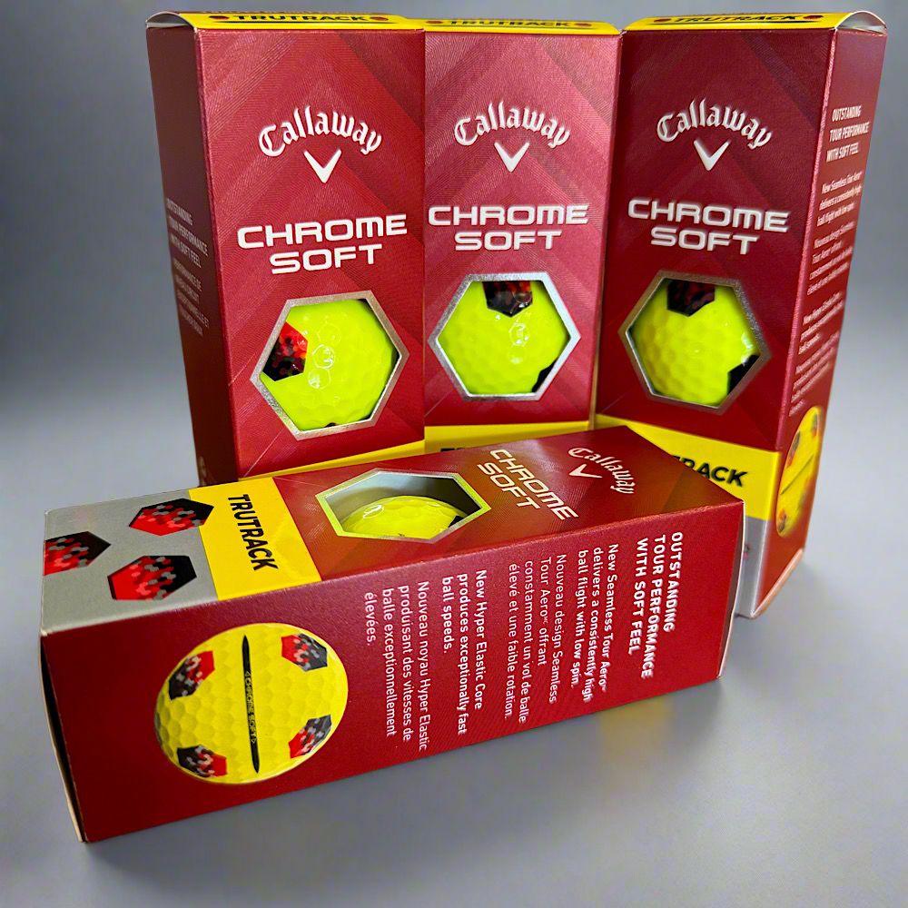 These are brand new Callaway Yellow Chrome Soft TruTrack Golf Balls in original packaging and sleeves.